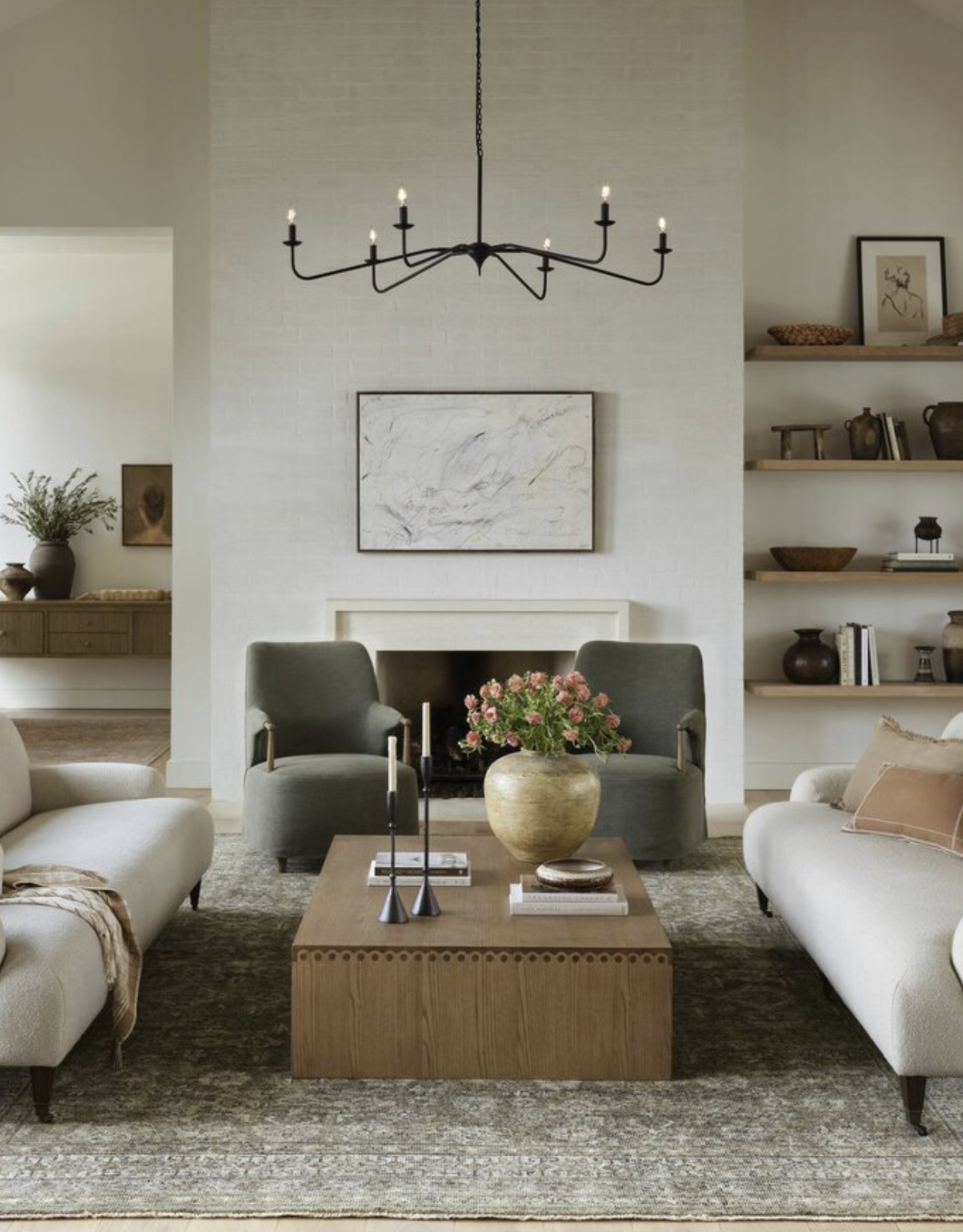 This French industrial-inspired, candelabra-style chandelier features slim lines of antique iron and tapered bobeches all around. This piece is compatible with sloped ceilings.
