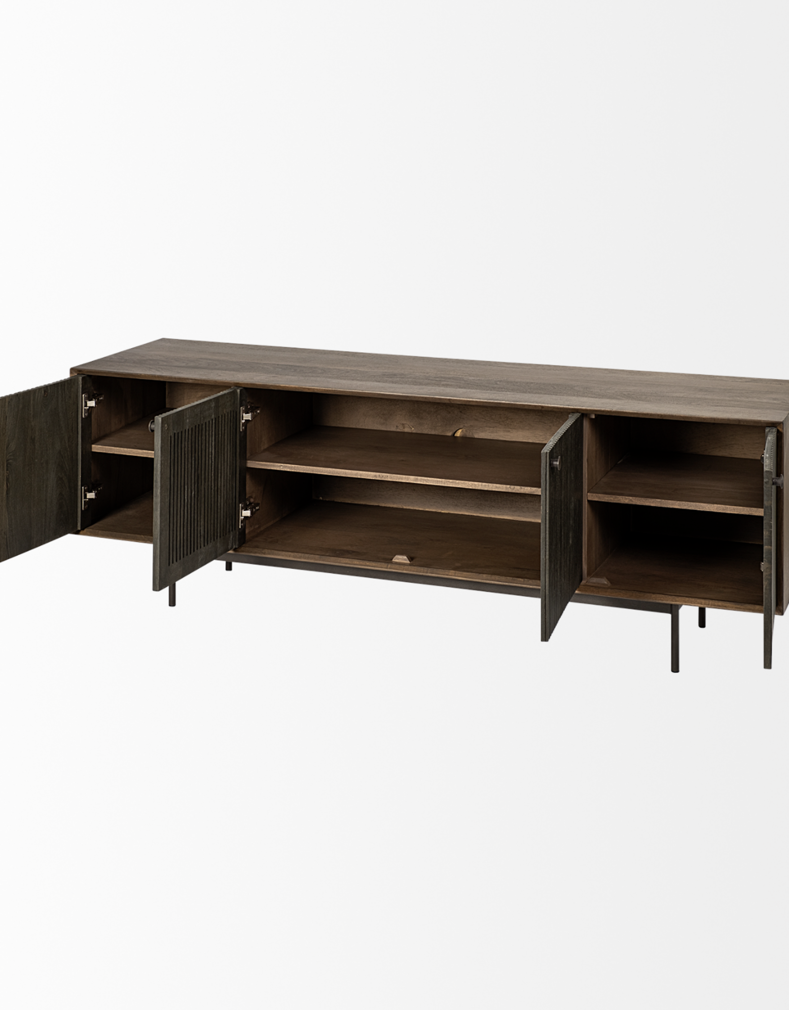 The four doors on this exquisite media cabinet don an intricate, shutter-inspired pattern that makes it the perfect piece for any modern space. The Grace I is equipped with a media cable cut-out and sophisticated, concealed hinges that allow for soft-closing doors.